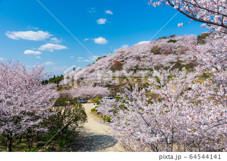 《岡山県》種松山公園西園地の風景、晴れの日の桜