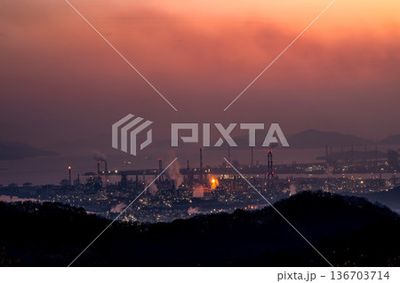 宵の明星が灯る頃トワイライトに浮かぶ工場