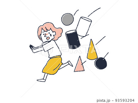 たくさんの物が襲ってくる女性 さまざまな種類の問題を一度に抱える人々のコンセプトアート