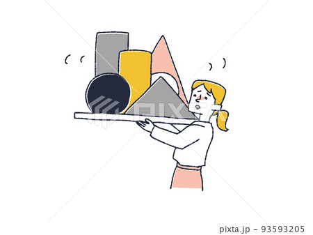 たくさんのものを持っている女性 さまざまな種類の問題を一度に抱える人々のコンセプトアート