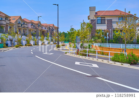 東京郊外の新興住宅地に並ぶ低層マンション