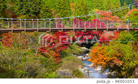 大井平公園 秋 紅葉 見頃 渓流, 吊り橋