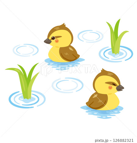 水田にいるアイガモのヒナのイラスト