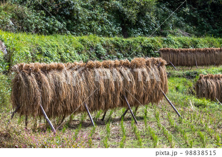 農村風景 イネの自然乾燥 小田掛け