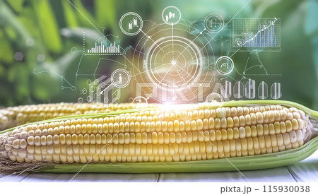 CGイラスト トウモロコシのデータを分析するイメージ素材