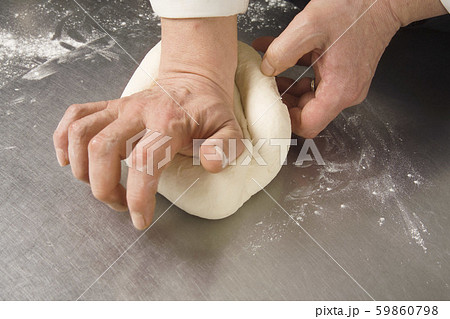 粉を混ぜて形を整える調理シーン