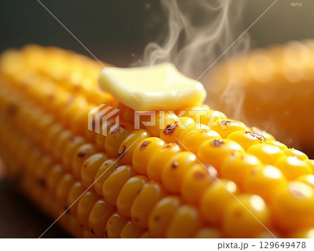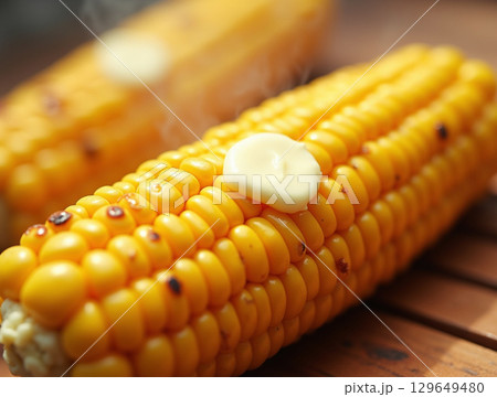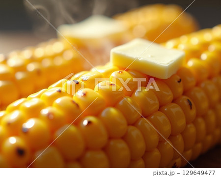 Close-up Steaming Sweet Corn on the Cob with Butter Food