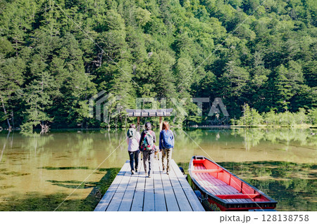 夏の上高地穂高神社奥宮境内にあるパワースポットの明神一之池2