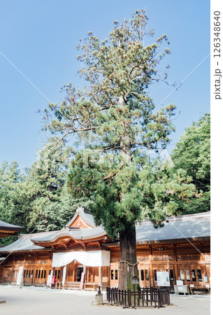 <安曇野>穗髙神社 本宮 拝殿と孝養杉