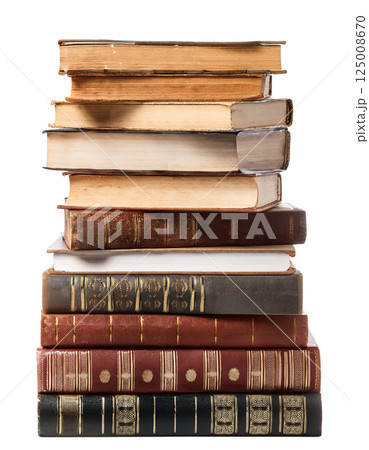 古書、アンティーク、ビンテージ風の古びた本の山(JPEG/PNG)