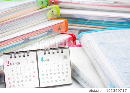 カレンダーと大量の書類ファイル_事務作業_学習予定_締め切りイメージ