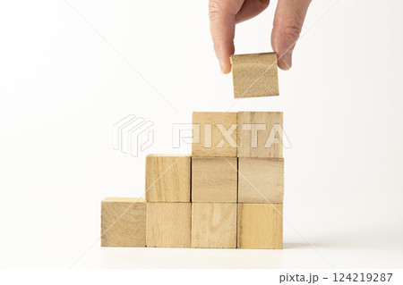 Planning to reduce investment risks, plan and strategy in business, Establishing a business risk mitigation plan to create stability for the company, Business growth with wooden blocks concept.