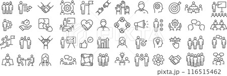 ベクターでモノクロのリーダーに関する線画アイコンセット