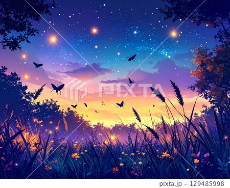 夜桜の幻想的な背景イラスト - 春の夜の美しさ