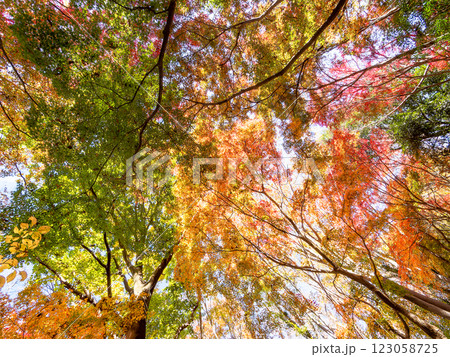 晩秋の秋晴れに映える鮮やかに色づいた紅葉