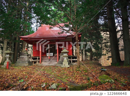 晩秋の遠野市 落葉に囲まれた白石稲荷神社