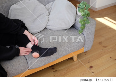 穴のあいた黒色のくつ下