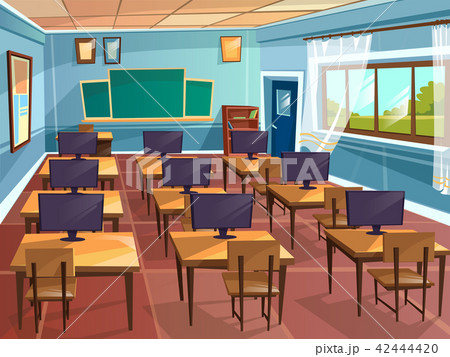 cartoon empty school, college classroom