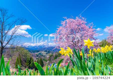 【春素材】春の絶景・小川村番所の桜【長野県】
