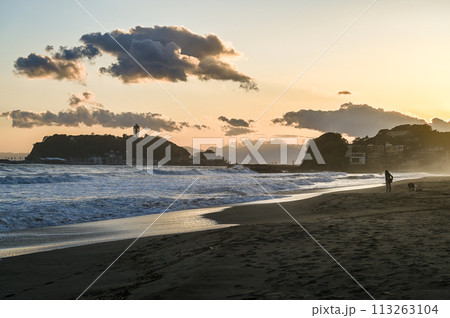 夕方の神奈川県湘南江の島と海岸