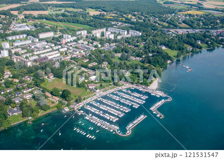 スイスジュネーブ近郊の美しい空撮風景