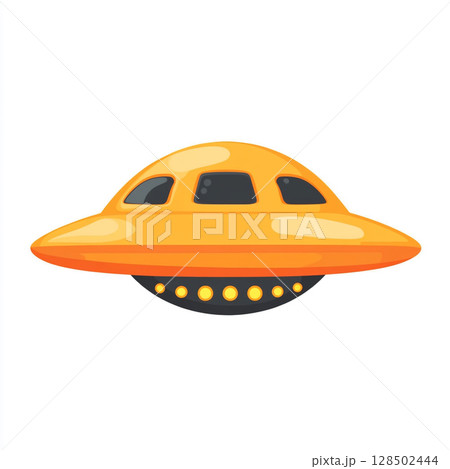 A colorful hand-drawn cartoon UFO, isolated on a white background.