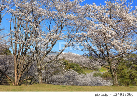 《長野県》満開の桜と北アルプスの山々・番所の桜