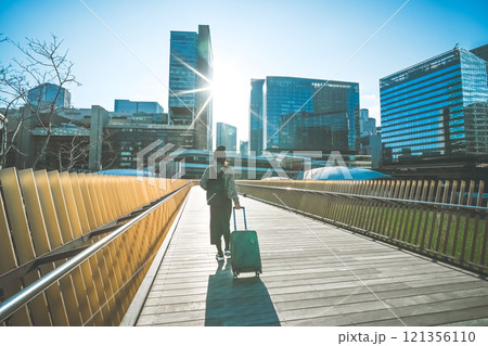都会で働くビジネスウーマン(出張・トランクケース・スーツケース)