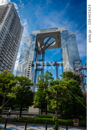 青空を背景にした超高層ビル、梅田スカイ、6月27日、日本