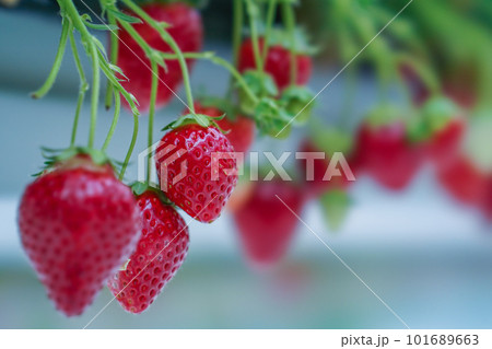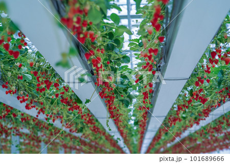 空中栽培されているいちご