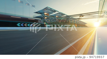 Modern futuristic fast sport car in city center. Neural network AI generated art