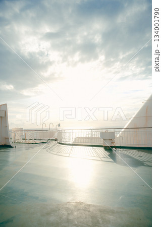 フェリー甲板から見る大海原と青空の風景