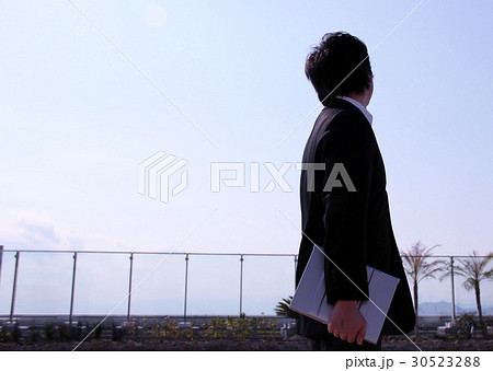 空を見上げるビジネスマン