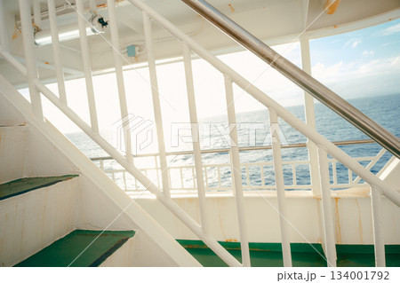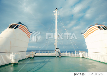 フェリー甲板から見る大海原と青空の風景