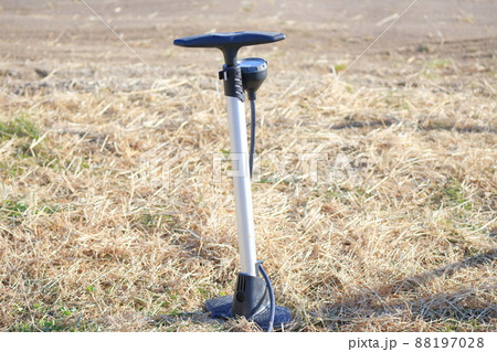 Bicycle floor air pump to inflate bike tires with two type of valves.
