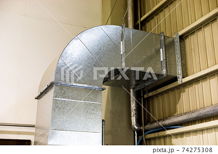 工場の空圧機器 エアーコンプレッサーと排気ダクト