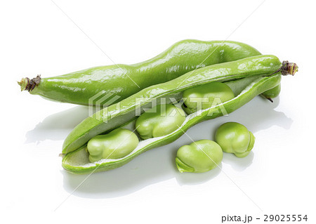 鞘を開いた状態のそら豆 白背景