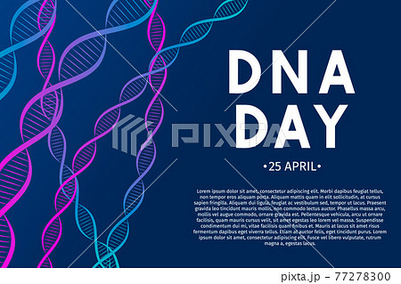 DNA day typography poster. Science concept vector illustration. Neon helix of human DNA molecule. Easy to edit template for banner, flyer, brochure, greeting card, etc.