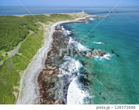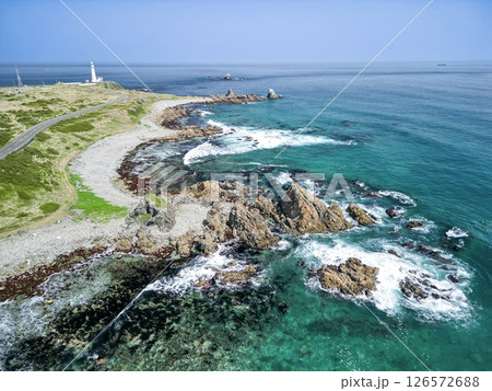 空撮「青森県」 本州最北端に佇む白亜の尻屋埼灯台 下北半島