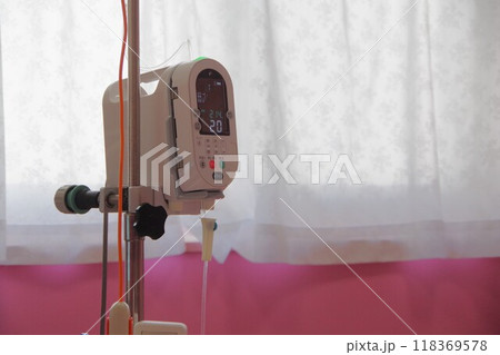 出産を待つ分娩室から見えるシリンジポンプ(輸血ポンプ)