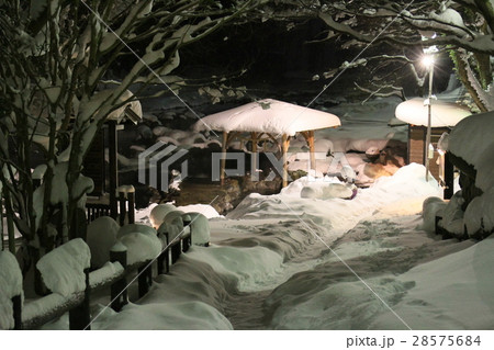 温泉 夜 雪 積雪 山間 山奥 客あり 日帰り温泉