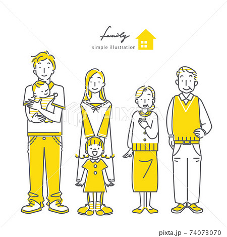 三世代家族のスタイリッシュでシンプルな線画イラスト