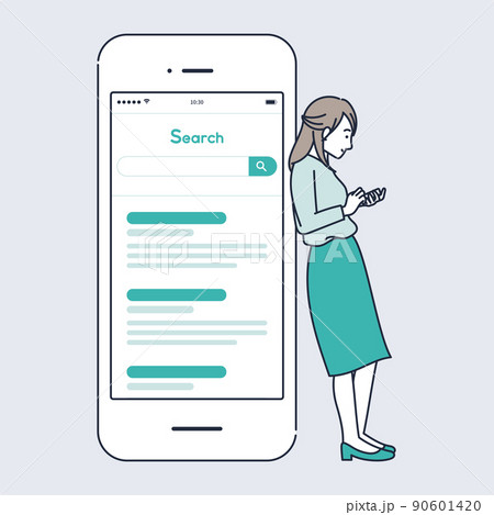 寄りかかってスマホをいじる女のイラスト素材