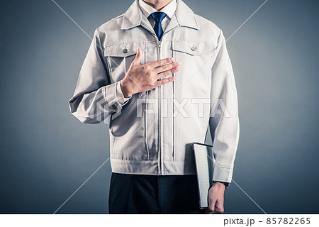 作業服の男性 スタジオポートレート グレーバック