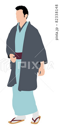 人物全身シルエットイラスト (和風・正月素材) / 和服・着物を着た男性(正面)