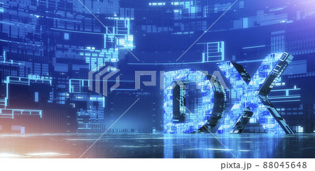 立体的なDXシンボル / デジタルトランスフォーメーション・未来志向のイノベーションのイメージ