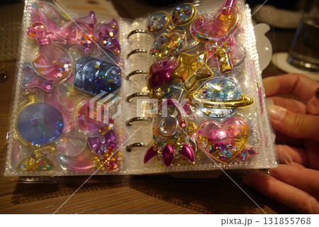 キラキラした立体的なシールが貼られたシール帳