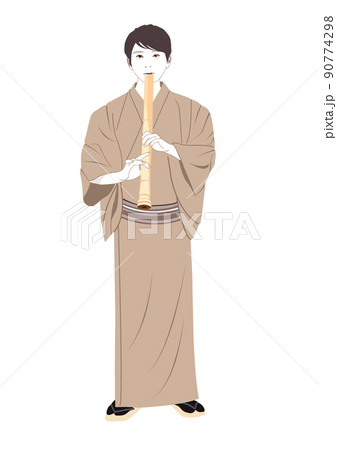 尺八を吹く若い男性イラスト