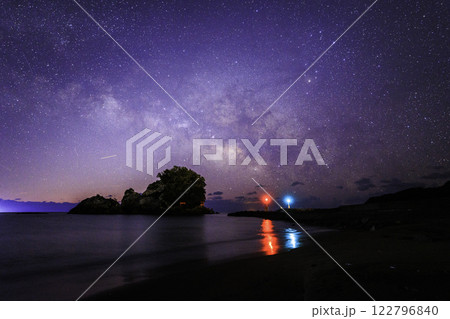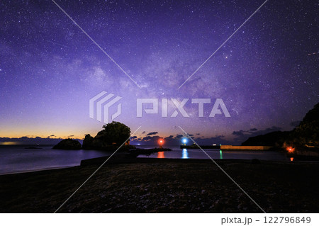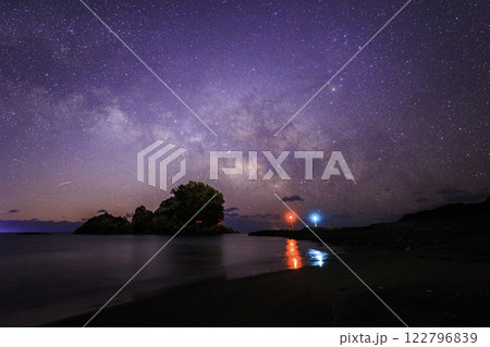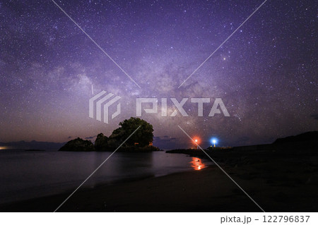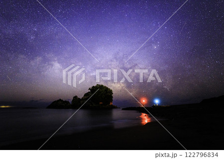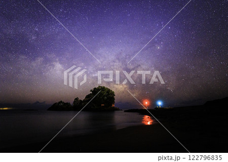 《徳島県 大浜海岸》 大浜海岸と立島神社の鳥居と天の川