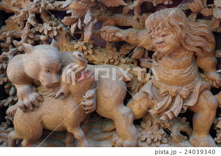 信州 松本の文化財 須々岐水神社の舞台 兎川寺町の舞台の彫刻 立川流彫刻の舞台(山車)は長野県宝